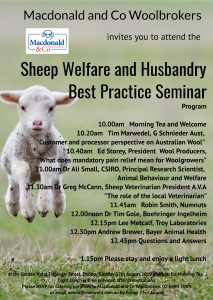 If you would like to attend the seminar, please RSVP to Macdonald & Co Woolbrokers by Friday 23rd August –